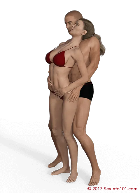 The Bodyguard family combines the intensity of Doggy Style with the intimacy of Spooning... while being easy to perform anywhere you can stand or even kneel! Offering great access for breast play, we recommend that men take advantage... and to throw in a little neck and earlobe kisses if you can reach.