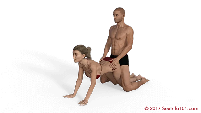 In a subtle adaptation to the standard form of Doggystyle, the Closed variation has the woman's legs closer together with the man's on the outside. The closed position of her legs can provide a different sensation for both partners, and gives the woman much more control over the height of her pelvis... which we recommend you experiment with to find the best angles. As in all kneeling positions, pillows under the knees tend are essential for staying comfortable.