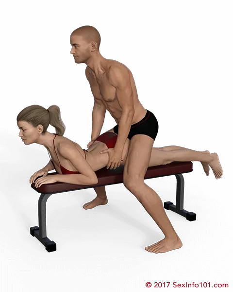 Take the Groundhog position to a higher altitude with the Standing variation. Featuring the most mobility in this position family, it provides men with a lot more control over their angle of penetration. He can stand taller for a downward angle to target her g-spot, her he can squat lower to target either the anterior or posterior fornix. Make sure to experiment with a pillow under her pelvis to help you find the angles that feel best!