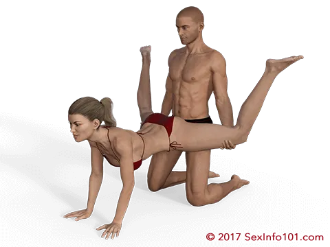 Unlike the standing variation, you don't have to lift both legs at once, giving you the opportunity to penetrate with only one leg raised, which also happens to make slipping out a little easier to deal with. On the downside, the position places a lot more weight on the man's knees, so you may want to use some pillows to help soften the ground a little.